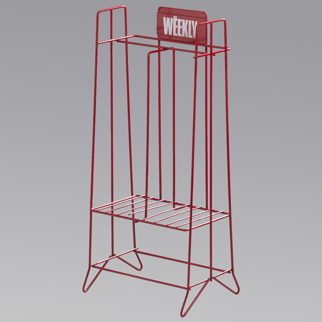 1 shelf, free standing, non-foldable digest rack with center divider, and with 36 1/2 inches of stacking capacity.